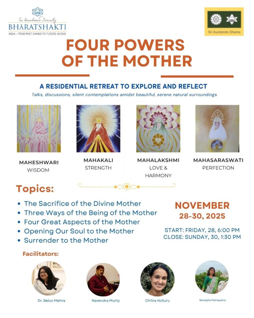 Date: October 31, 2025 Venue: Matriniketan, Pondicherry As part of the residential programme organized by Uditam: Institute for Integral Healing, Sri Aurobindo Society, Dr. Beloo Mehra, Director, BhāratShakti, was invited to facilitate a group discussion session on Saturday, October 31, 2025. For her session, Dr. Mehra focused on the topic – The Age of Mahasaraswati. Dr. […]