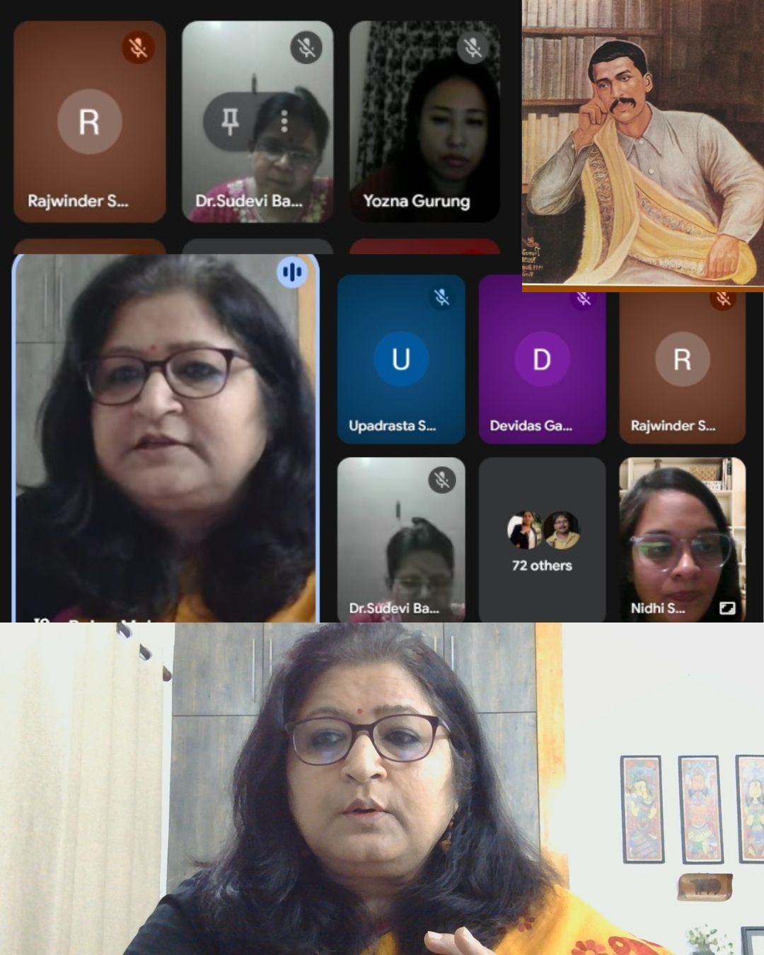 Before starting her talk, at the request of some of the participants, Dr. Mehra gave a brief 10-minute summary of Sri Aurobindo’s phenomenal work as a yogi-revolutionary, highlighting some of the key turning points in his pre-Pondicherry phase. This helped set the context for her discussion on how the deeper insight we get from exploring Sri Aurobindo’s spiritual view of nation and nationalism helps us go beyond politics—and in fact, it helps us reflect on what is the soul of a nation and its role in humanity’s evolution.