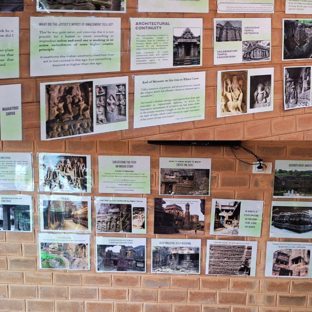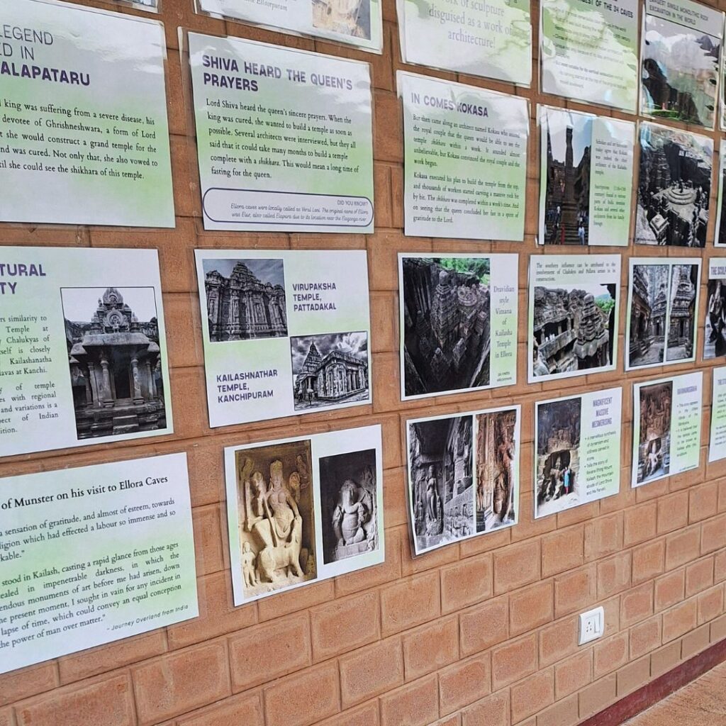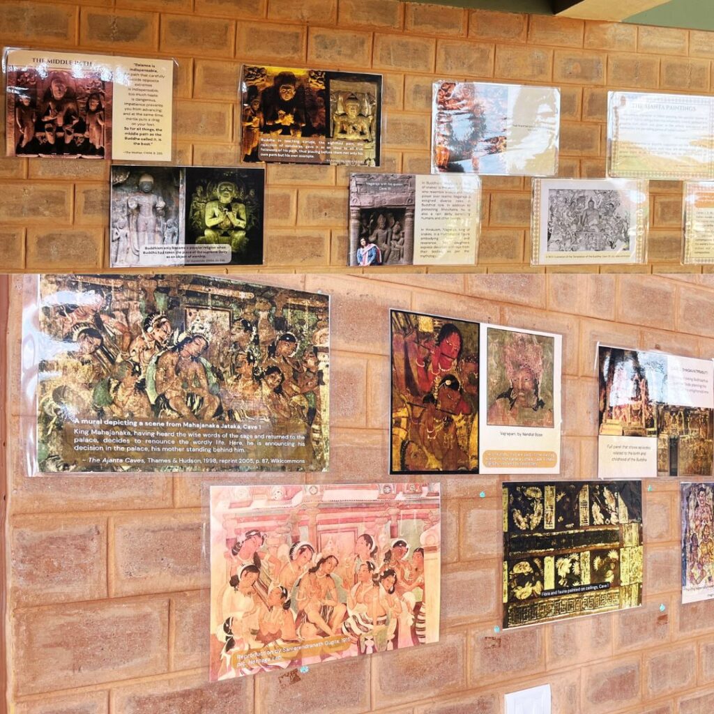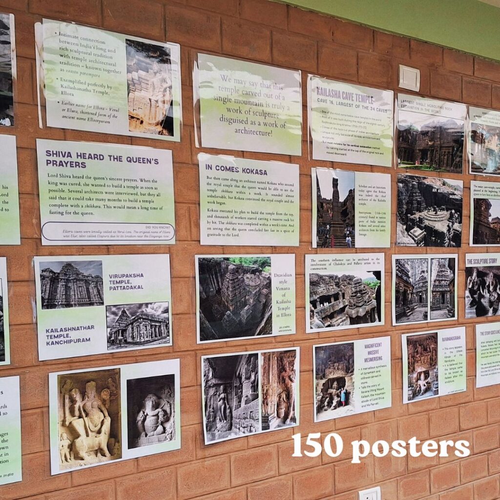 Both these exhibitions were put on display on September 15, 2025 at two different places in the vast campus of Freedom Land. The displays will stay up for a month and a half (may be longer) so that students and teachers can go through the posters at their own pace as a way to prepare themeselves for their upcoming field trips to Ajanta and Ellora. The teachers will be working with smaller groups of children helping them understand if they need any help, and also to go deeper into their own research if something makes them interested in learning more about a specific topic.