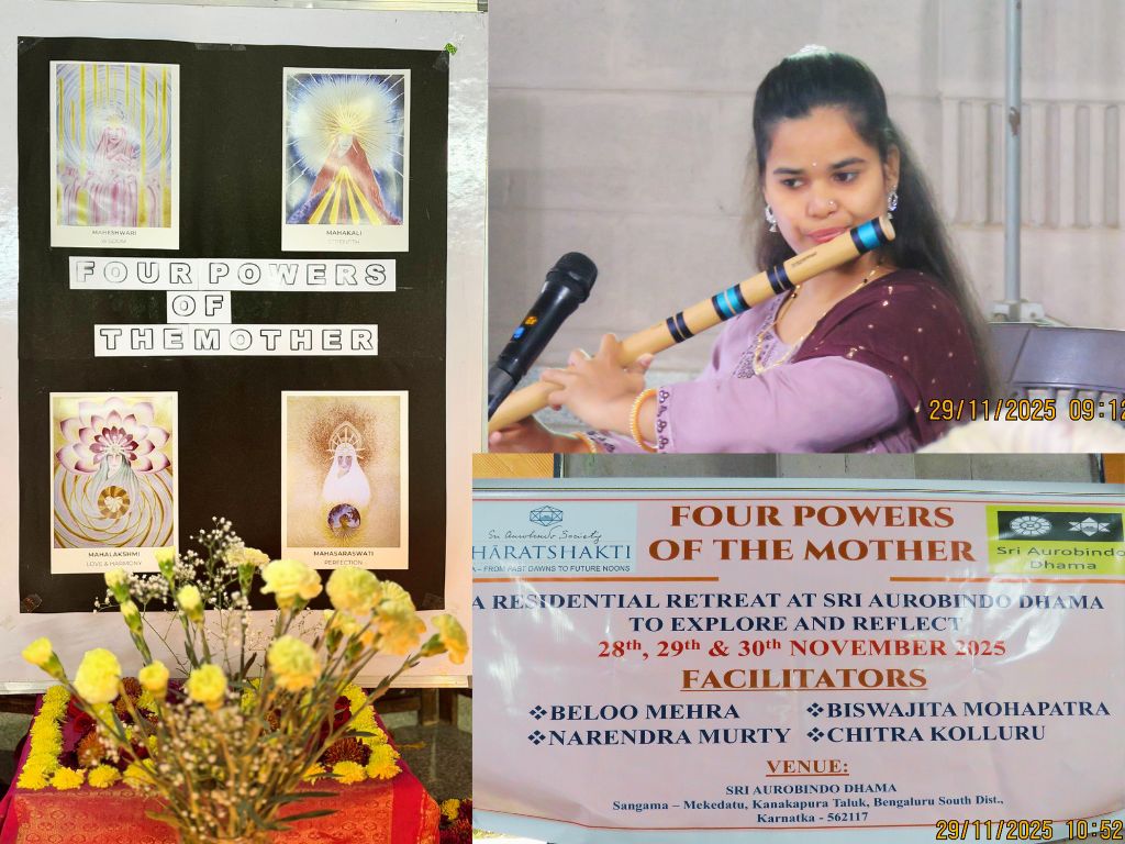 The BhāratShakti team conducted a 2-day Residential Workshop-Retreat on the theme – “Four Powers of the Mother” from 28-30 November at Sri Aurobindo Dhama, located in the serene and beautiful natural surroundings at the banks of Kaveri river in Sangama-Mekedatu in Kanakpura, Karnataka.