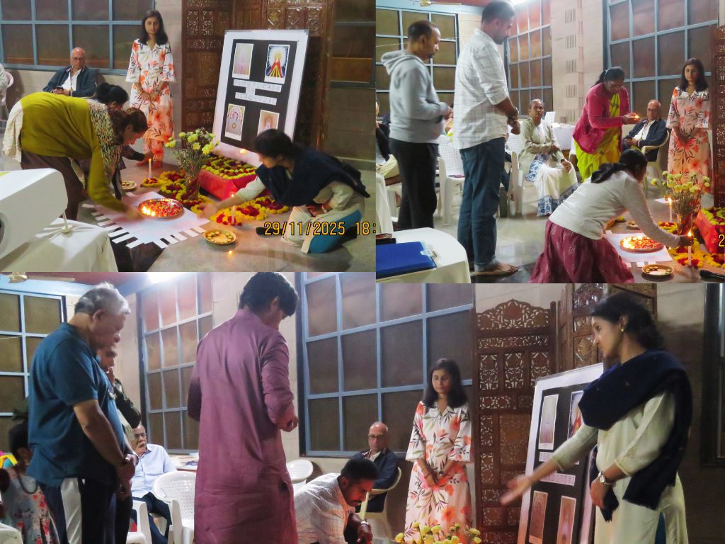 The last activity of Day 1 involved an Individual Contemplative Work. Each participant was asked to light a small diya in front of the small altar that was created with photographs of the four aspects of the Mother. After lighting the diya, the participant picked up a card which featured selected words of the Mother or Sri Aurobindo on “Opening to the Mother’s Force.”