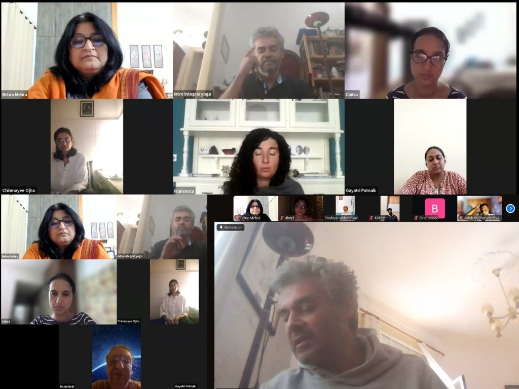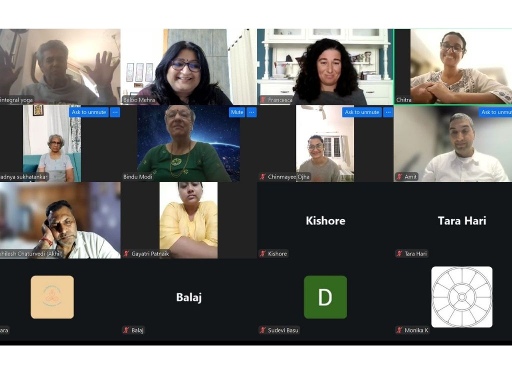 Every online session started with a mantra chanting followed by 15-20 minutes of silent meditation. This was followed by a brief presentation by the facilitator on the topic of the day. This presentation also included practical guidance and answering questions from the participants.