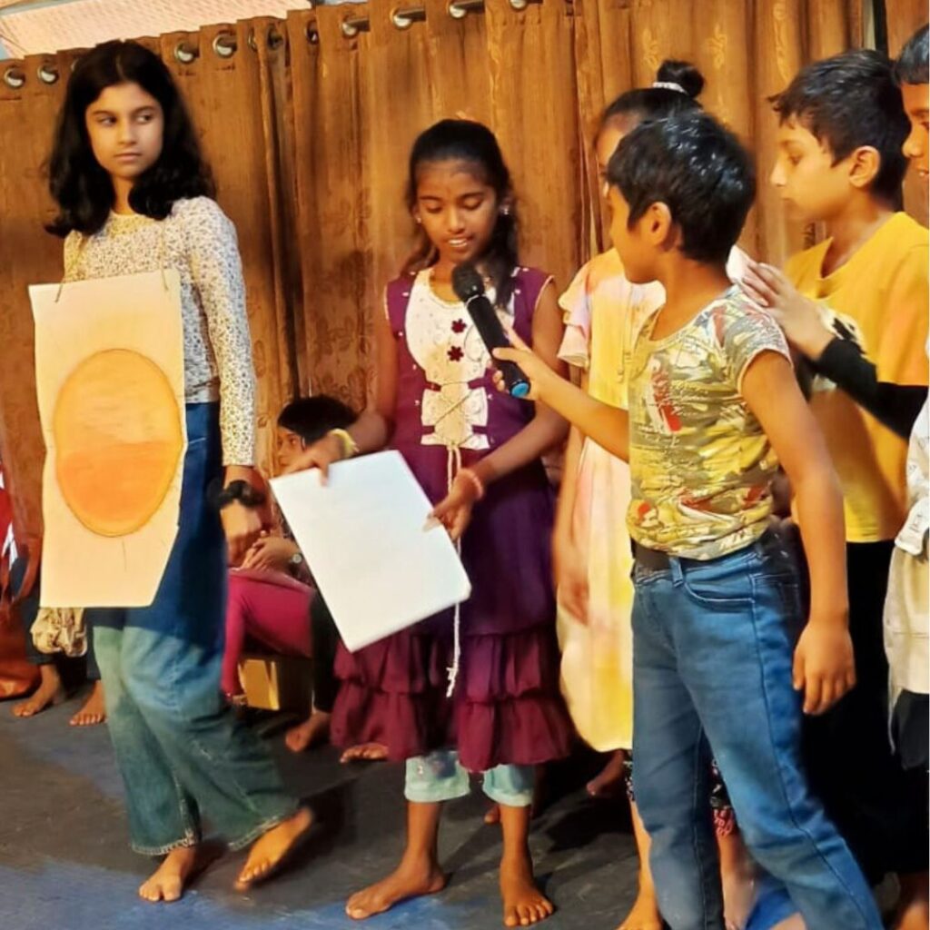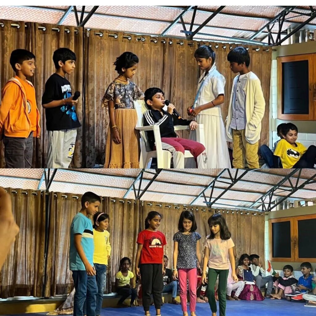 This value of gratitude was also taken up in short skits that the children in small groups practiced and performed under the guidance of Ms. Mohapatra. Through their skits, different groups of children highlighted why it is important to be grateful to parents, teachers, Mother Nature, Sun, doctors, soldiers, and farmers.