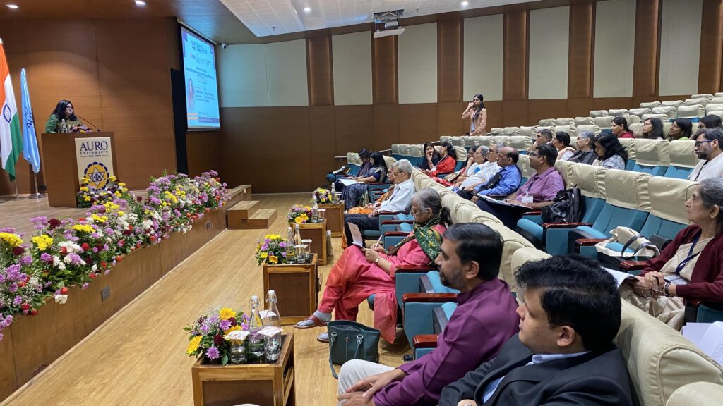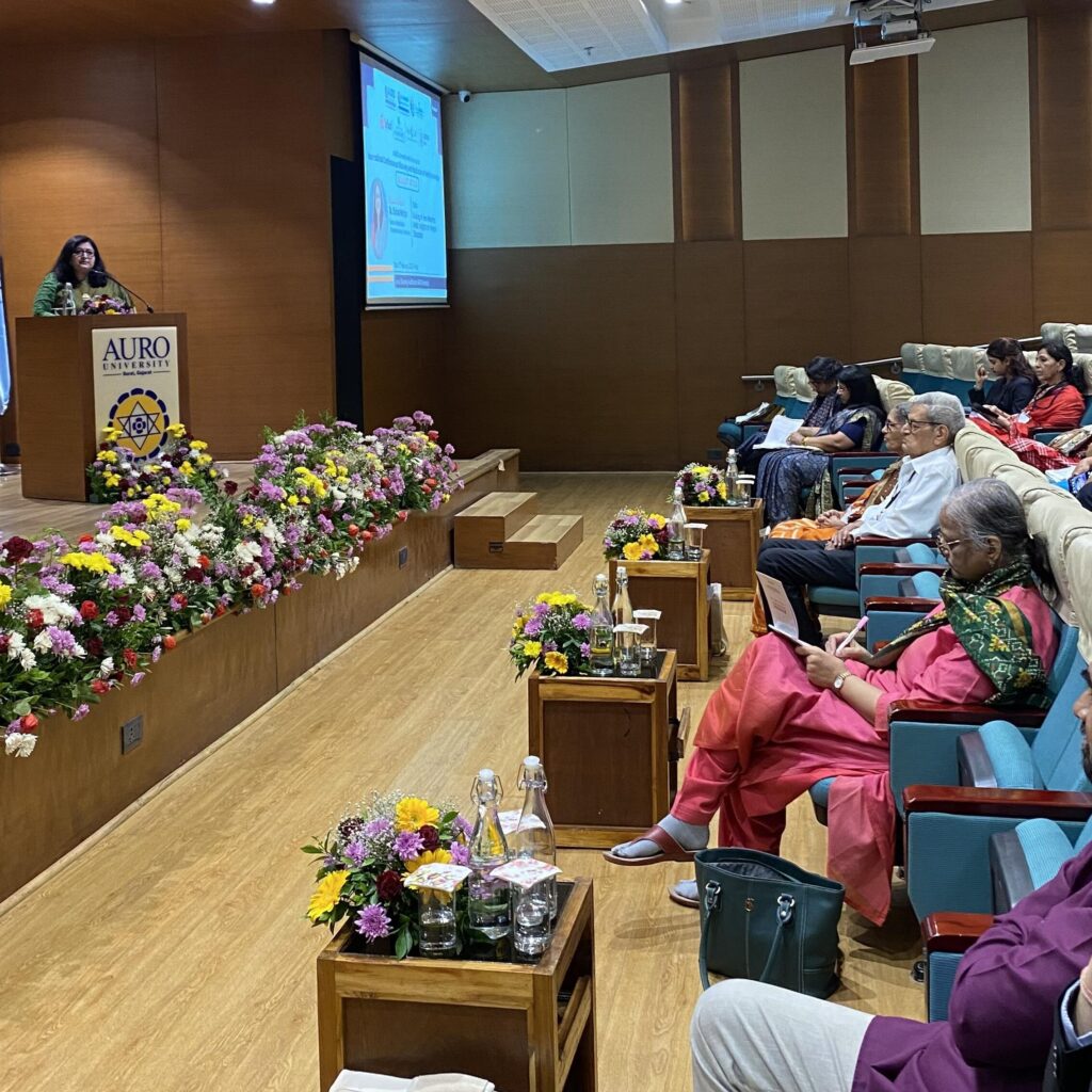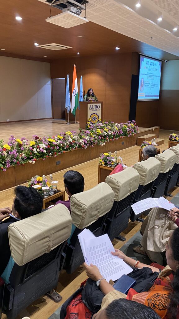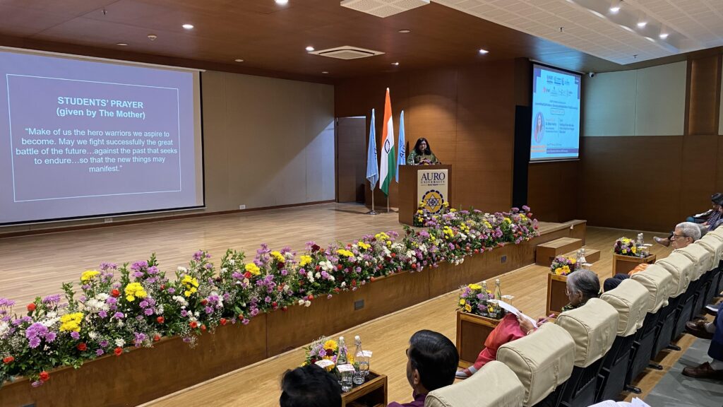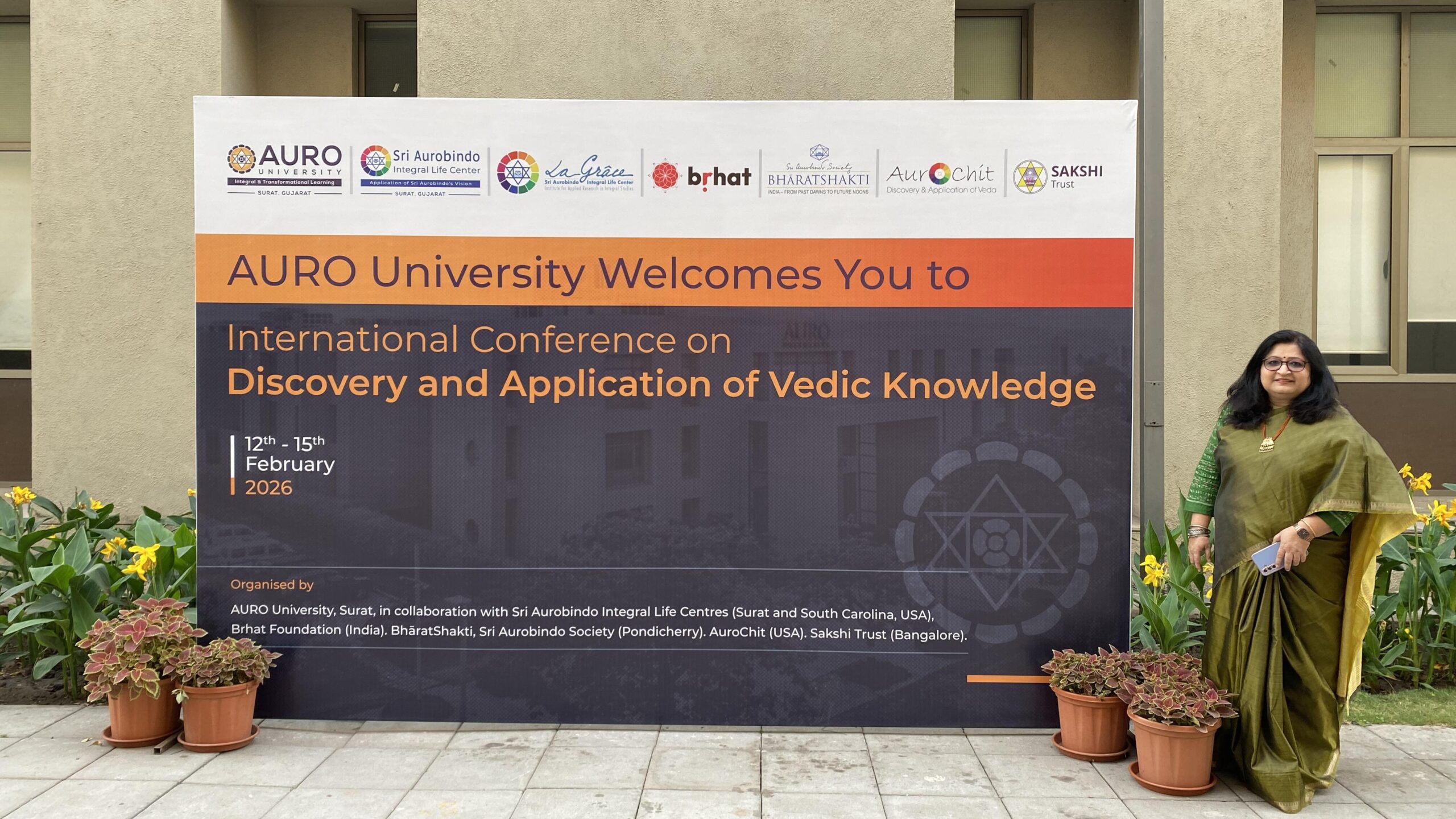 During February 12 to 15, 2026, an International Conference on Discovery and Application of the Vedic Knowledge (February 12-15, 2026), organised by Auro University in collaboration with Sri Aurobindo Integral Life Center, Surat, La Grace Sri Aurobindo Integral Life Center, USA, Bṛhat Foundation, BhāratShakti, Sri Aurobindo Society, SAKSHI Trust, Bengaluru and AuroChit, USA, was held at the campus of Auro University. Dr. Beloo Mehra, Director, BhāratShakti, SAS, was invited as a keynote speaker and representative of a collaborating institution.