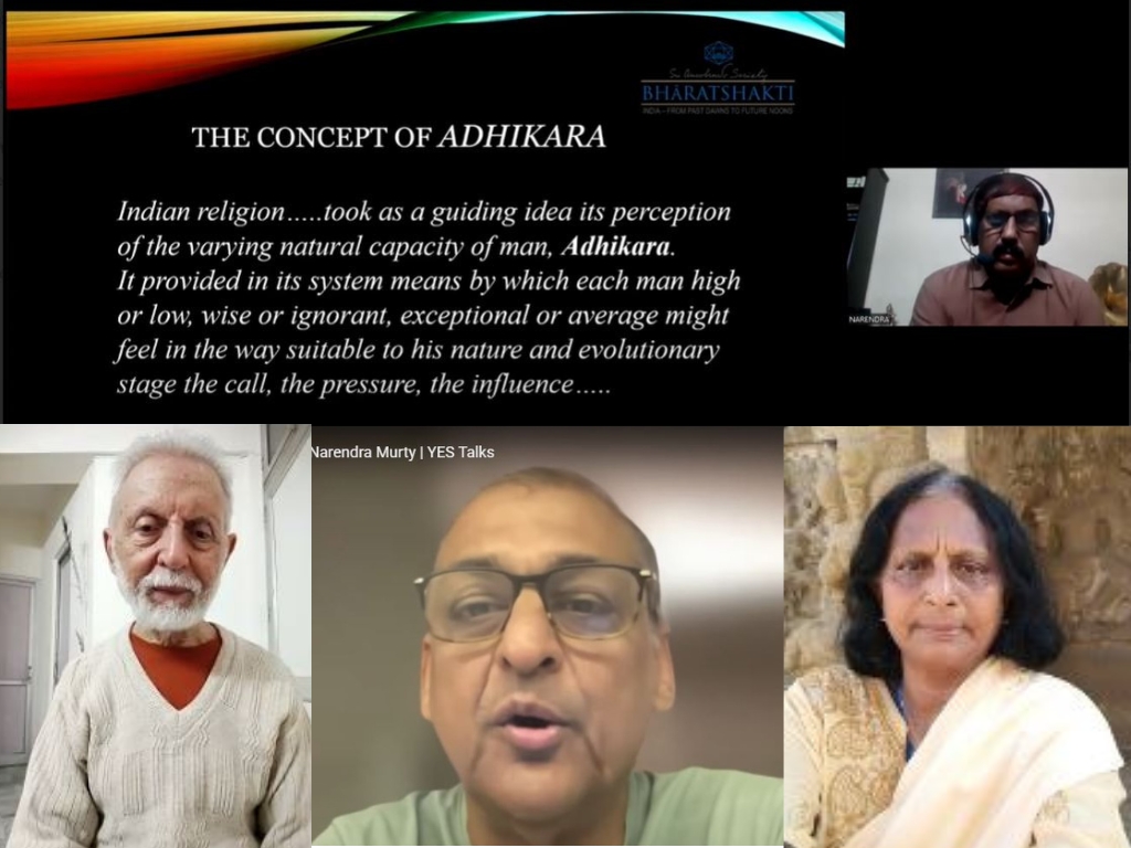 On 8th November, 2025, Narendra Murty, Research Associate, BhāratShakti was invited to deliver an online talk as part of the weekly YES Talks. YES – Yoga, Education and Spirituality – is an initiative started by Dr. Ramesh Bijlani of Sri Aurobindo Ashram, Delhi Branch, based on the idea – Yoga is education. Education is incomplete without spirituality. Spirituality in practice is yoga.
