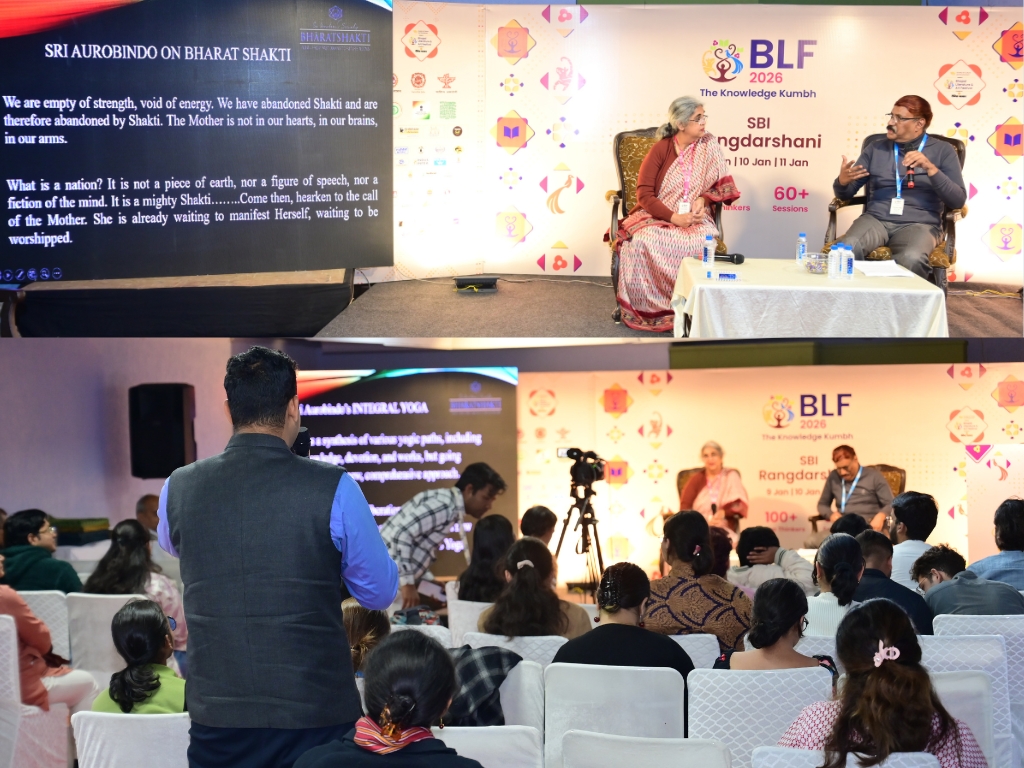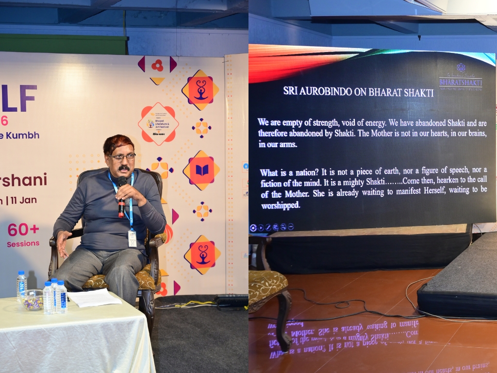 On January, 10, 2026, Mr. Narendra Murty, Research Associate, BhāratShakti was invited to deliver a talk at the prestigious Bhopal Lit Fest, on the topic “Sri Aurobindo: The Revolutionary, The Yogi.” The session was moderated by Dr. Reema Hooja, Archaeologist, Historian, Writer and a Fellow of the Royal Asiatic Society.