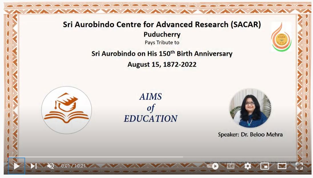 On August 31, 2021, Dr. Beloo Mehra from BhāratShakti, Sri Aurobindo Society was invited by Auro University and Sri Aurobindo