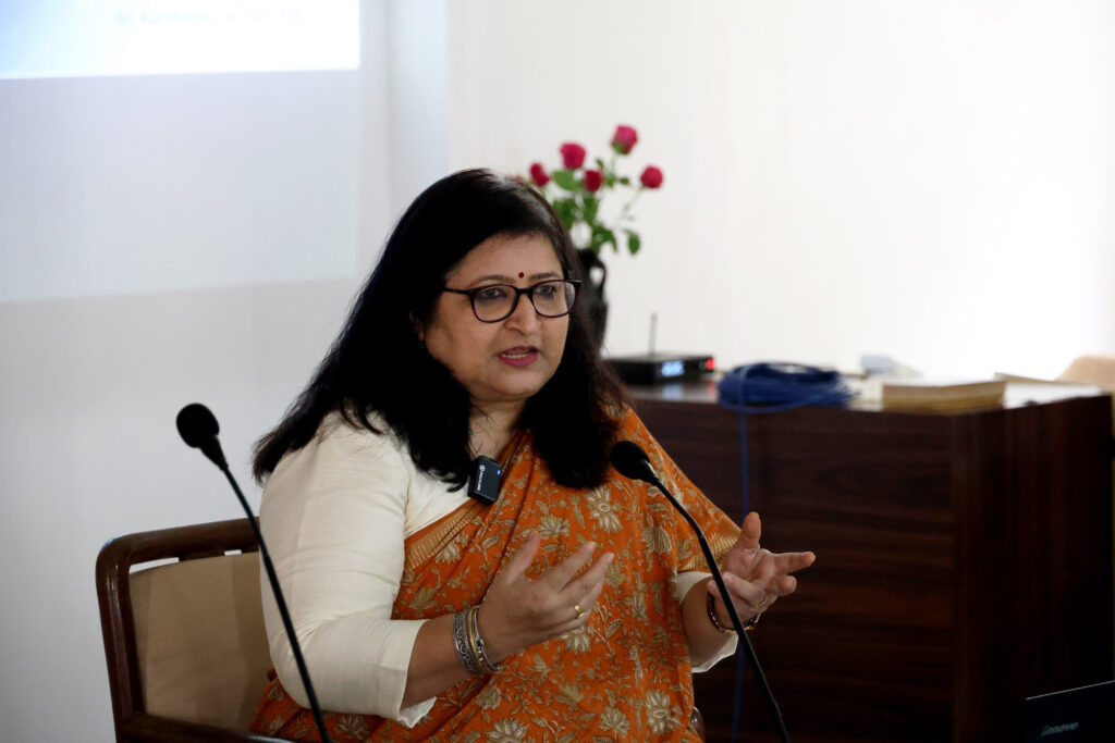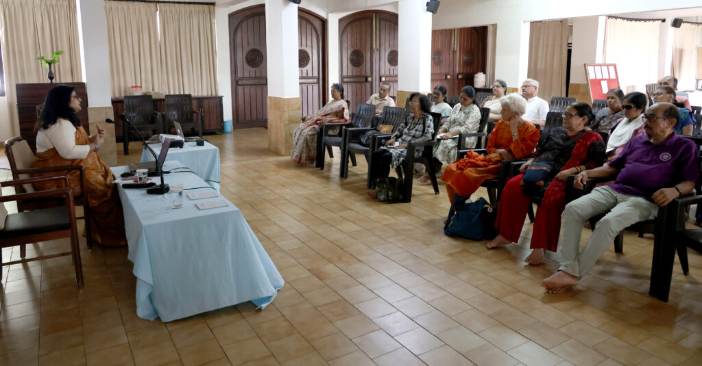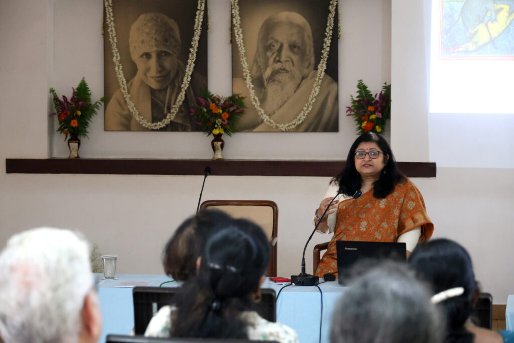 Prayer, as understood in the light of Sri Aurobindo and The Mother’s teachings, is a dynamic and transformative practice that can take various forms depending on the individual’s inner state and aspiration. Explaining how a true and sincere prayer must ultimately become an aspiration for a constate state of being, Dr. Mehra said that we find examples of such prayers in Mother’s Prayers and Meditations. She concluded her session with reading one prayer of the Mother.
