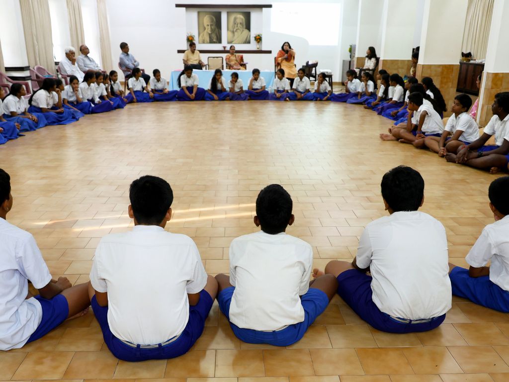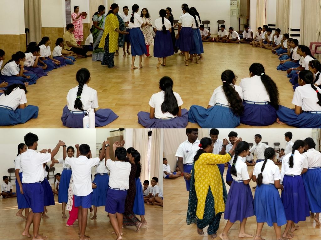 After the energetic garba activity, all students were asked to sit in a circle and practice a short silent meditation before concluding the workshop. The school authorities thanked the BhāratShakti team for organising a meaningful workshop in which students learned some important things in a fun, interactive manner. Overall it was a joyful experience for all the participants.