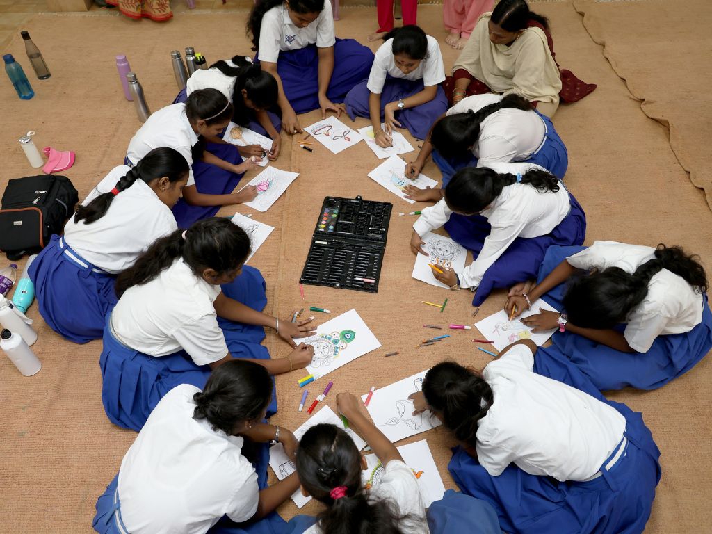 The workshop began with a brief concentration with music. After the welcome and introductions, Dr. Mehra informed the students and teachers about the different activities that were planned for them as part of the celebration of the spirit of Navaratri — a festival celebrating Shakti in nine forms.