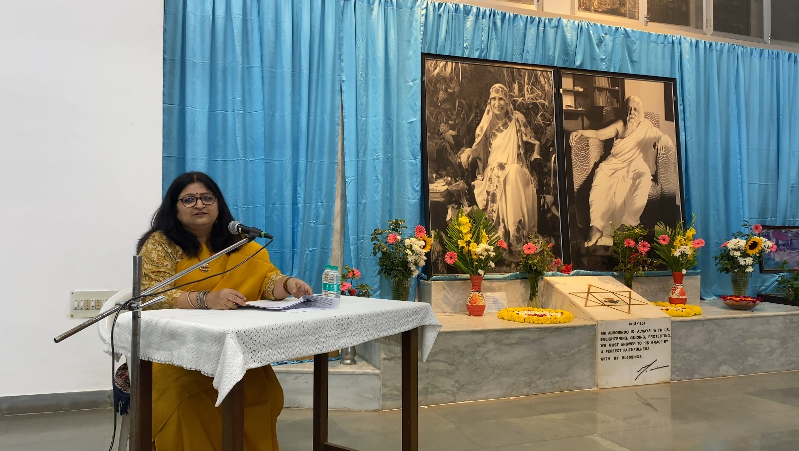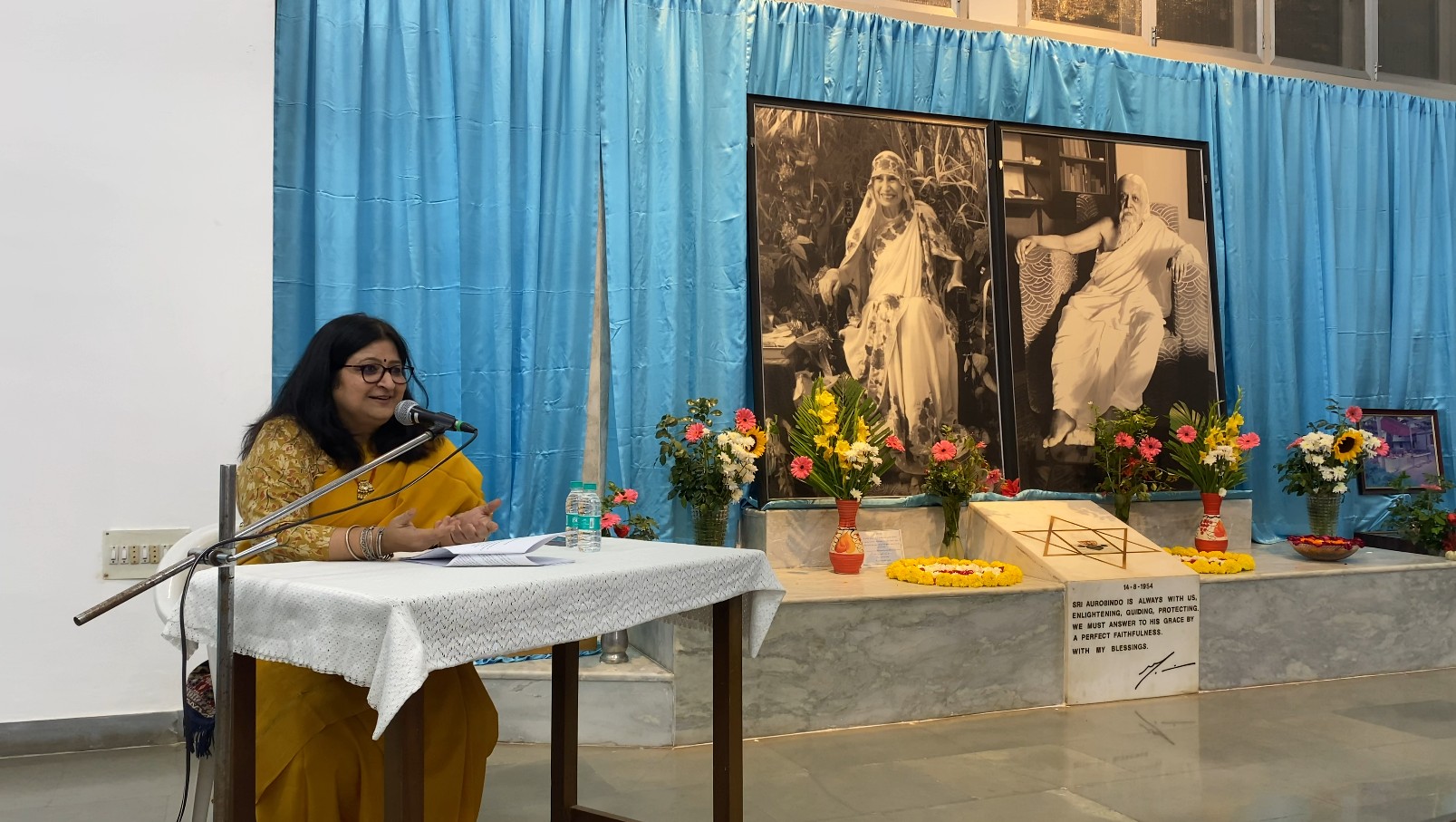 Dr. Mehra concluded her talk by saying that the centenary of Siddhi Diwas invites us to contemplate the vast evolutionary arc linking Sri Krishna’s ancient mission to Sri Aurobindo’s modern yogic work. Their oneness reveals the continuity of the Divine’s unfolding plan for the earth — for the divinization of earthly life. As seekers and children of the Mother, let us make this centenary year an occasion to strengthen our aspiration to participate consciously in this great unfolding, said Dr. Mehra.
